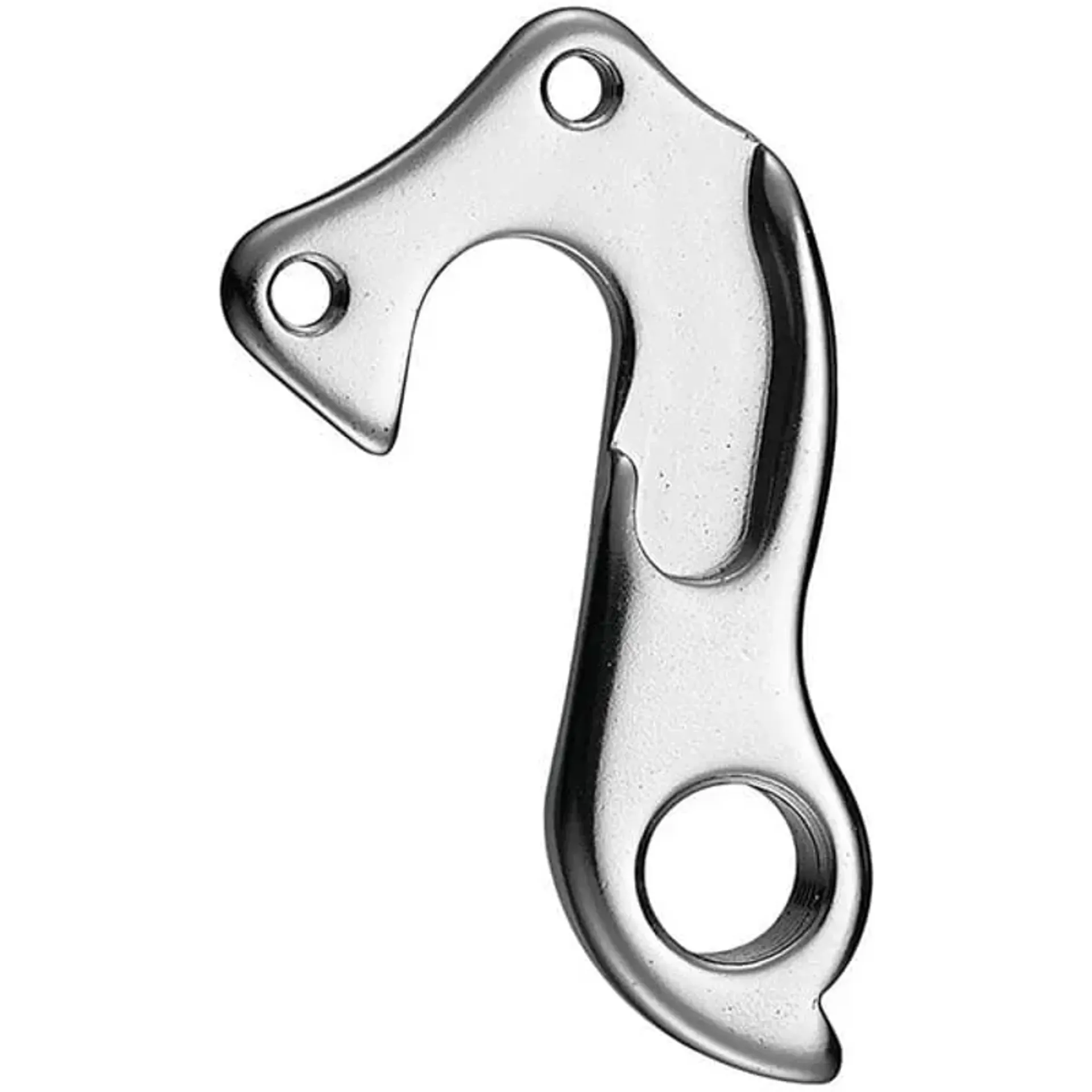 Bicycle gear hanger designed to bend or break on impact, preventing expensive frame damage.