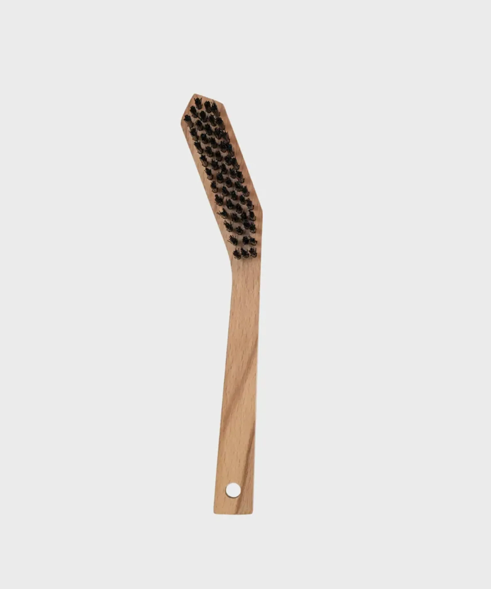 Ever knuckle punched a cassette tooth while cleaning? It hurts! To combat bleeding knuckles our unique angled head moves your hand away from the sharp spinning cassette while scrubbing. The stiff durable bristles have a low middle channel for the chain to sit into. This creates stiffer bristles in the centre for tough scrubbing while the chisel-cut tip helps to scrape gunk off jockey wheels.